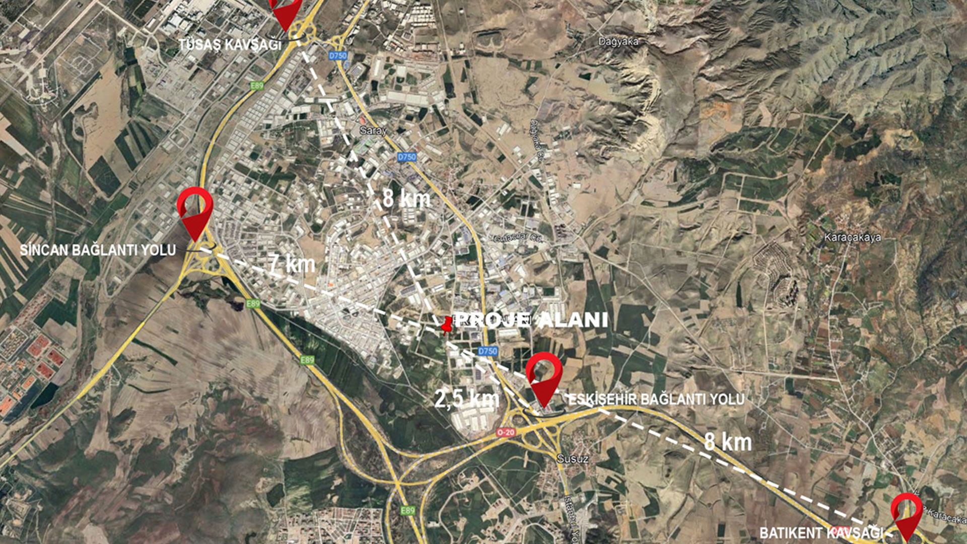 Taı-TUSAŞ Savunma Sanayi Bölgesi’ne 6 km mesafededir.